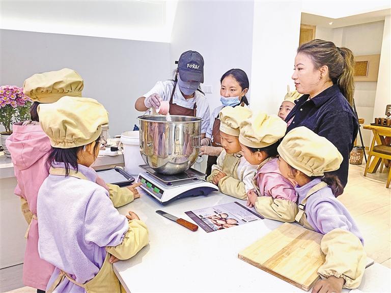 圖為烘培師為小朋友演示糕點(diǎn)制作的方法與步驟。記者 格桑倫珠 攝