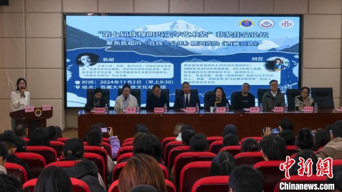 11月2日,西藏大學(xué)文學(xué)院主辦第七屆珠穆朗瑪文學(xué)藝術(shù)獎(jiǎng)獲獎(jiǎng)作品論壇,此次論壇聚焦敖超長(zhǎng)篇小說《直線三公里》以及劉萱詩集《西藏三章》,作家、詩人和文學(xué)評(píng)論家以及讀者現(xiàn)場(chǎng)交流對(duì)話,了解創(chuàng)作經(jīng)歷、創(chuàng)作過程等。