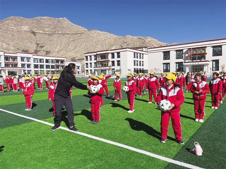 11月14日,“公益體彩 快樂(lè)操場(chǎng)”捐贈(zèng)活動(dòng)在拉薩師范高等??茖W(xué)校附屬小學(xué)舉行。全國(guó)女子自由式摔跤冠軍尼瑪拉姆和國(guó)家級(jí)摔跤裁判員索朗德吉親臨現(xiàn)場(chǎng),為孩子們送上了一份快樂(lè)體育大禮包。