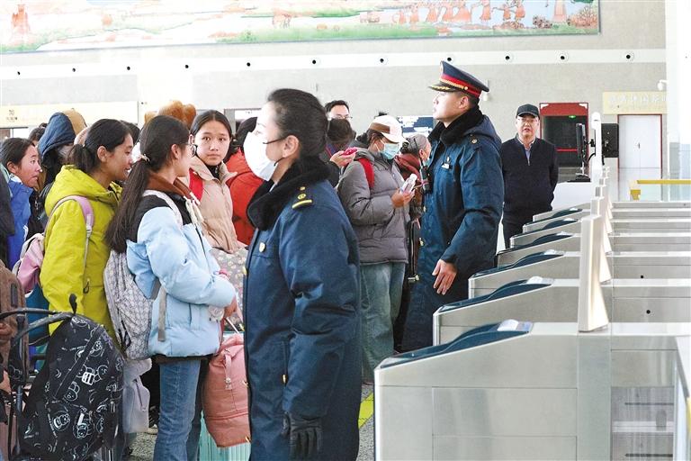 近日,為更好地服務(wù)學(xué)生寒假返鄉(xiāng),山南火車站積極與當(dāng)?shù)馗鲗W(xué)校聯(lián)系接洽,及時(shí)掌握返鄉(xiāng)學(xué)生的具體人數(shù)及客票、乘車需求等信息,并增設(shè)了學(xué)生票辦理專窗,安排專人引導(dǎo)。同時(shí),山南火車站還組織人員在安檢口、檢票口、電扶梯、站臺(tái)等關(guān)鍵區(qū)域加強(qiáng)引導(dǎo)幫扶,特別開辟了學(xué)生安檢專用通道,幫助學(xué)生快速驗(yàn)證進(jìn)站,減少等待時(shí)間。