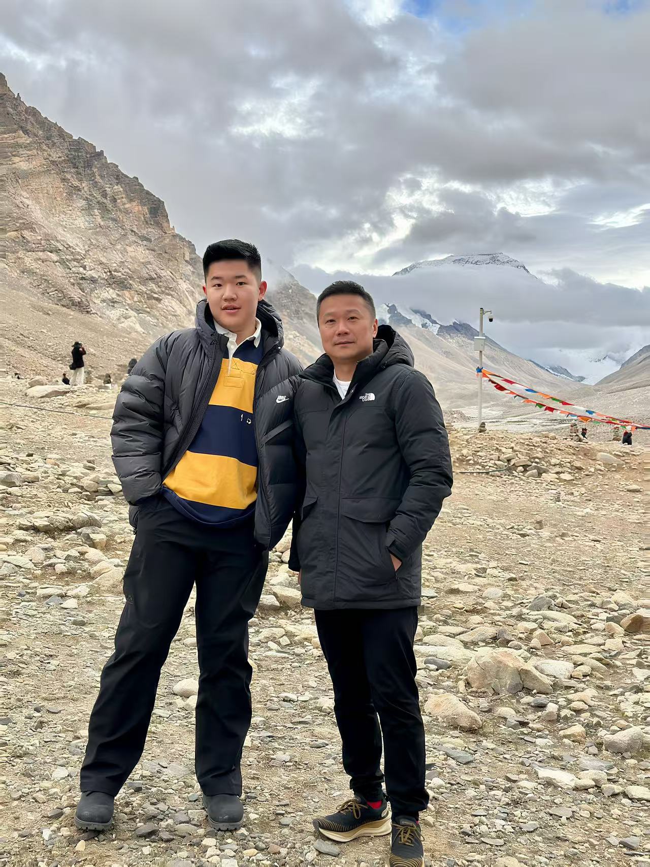 圖為2024年暑假,王若驍(左)參加西藏游學之旅期間在日喀則珠峰腳下的留影。