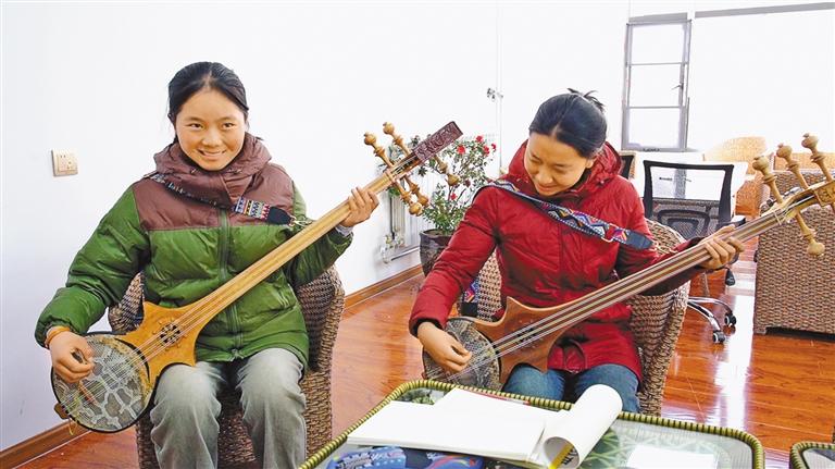 大學生志愿者在演示六弦琴彈奏。通訊員 王利軍 攝
