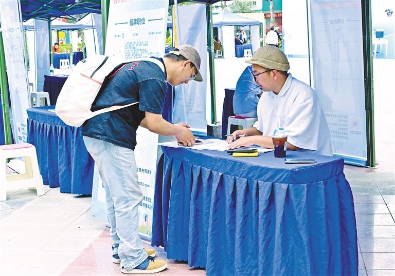 圖為求職者在了解崗位信息。記者 王敏 攝