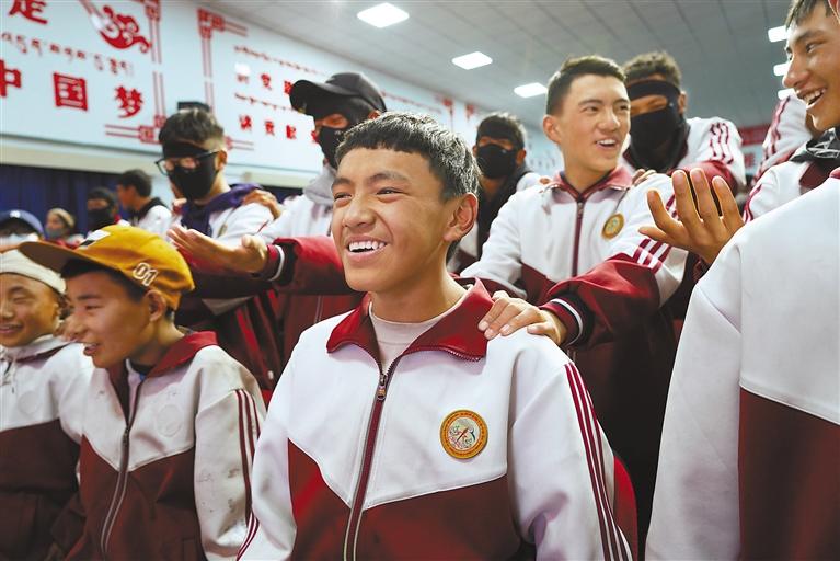 噶爾縣中學(xué)學(xué)生在進(jìn)行減壓游戲。記者 洛桑旦增 攝