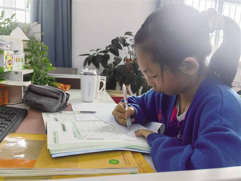 開學(xué)在即,學(xué)生加班加點(diǎn)寫作業(yè)。
