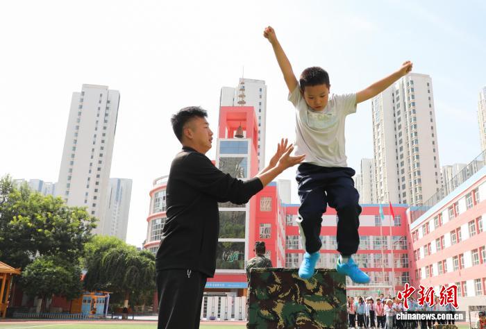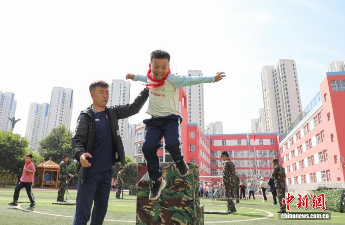 圖為學(xué)生體驗(yàn)組合障礙訓(xùn)練。中新社記者 馬銘言 攝