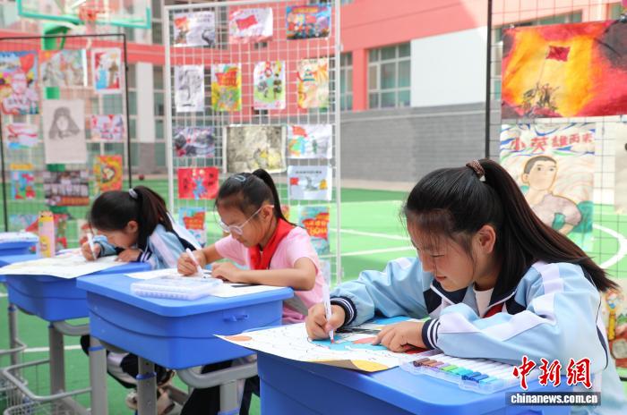 圖為學(xué)生繪畫作品。中新社記者 馬銘言 攝