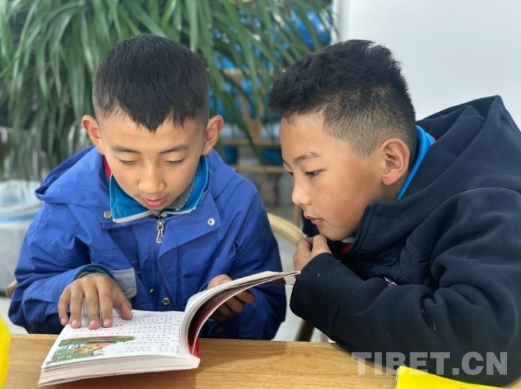 圖為拉薩市實(shí)驗(yàn)小學(xué)的同學(xué)們?cè)陂喿x書(shū)籍 攝影:旦曲