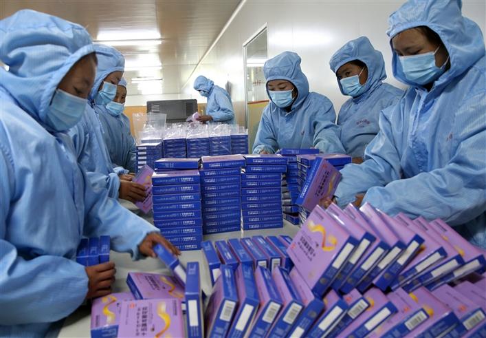 圖為貧困群眾在西藏金哈達(dá)藥業(yè)有限公司實(shí)現(xiàn)就業(yè),整理即將出售的藥品。記者 姚海全 攝