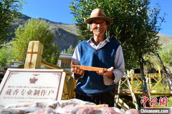 圖為西藏尼木縣吞巴景區(qū)內(nèi),一位農(nóng)牧民銷(xiāo)售自家制作的藏香。(資料圖) 江飛波 攝