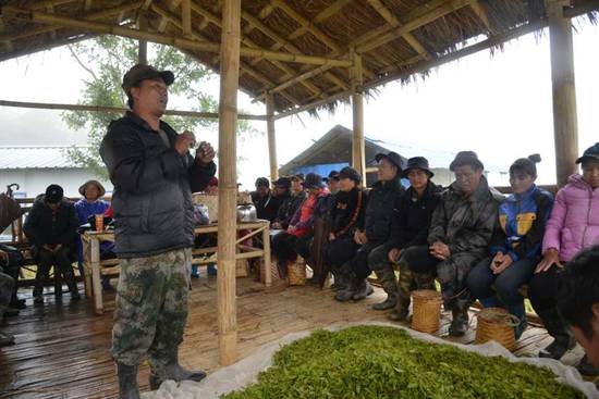 雨越下越大,格桑把村民們叫到茶葉基地旁邊的茅草屋避雨,借此機(jī)會(huì),他又用門(mén)巴語(yǔ)講解了民族團(tuán)結(jié)、掃黑除惡、醫(yī)療報(bào)銷(xiāo)等方面的內(nèi)容,這中間還穿插一些漢語(yǔ)的講解。