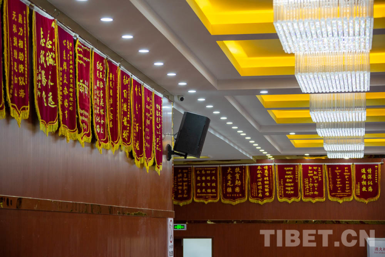 圖為隆子縣日當(dāng)鎮(zhèn)宗那建筑有限公司和興隆扶貧運(yùn)輸公司會(huì)議室里墻上掛滿的錦旗 攝影:趙耀