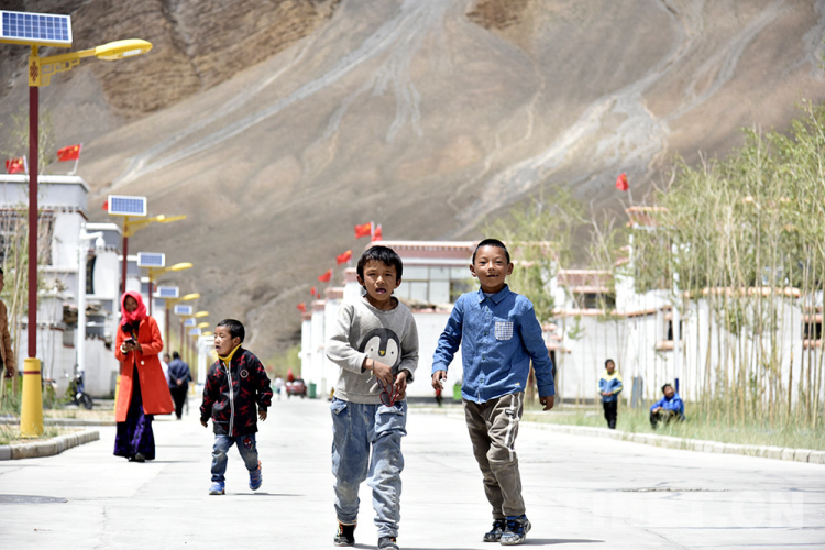 圖為西藏自治區(qū)阿里地區(qū)康樂(lè)新居易地扶貧搬遷點(diǎn)玩耍的孩子 攝影:王媛媛