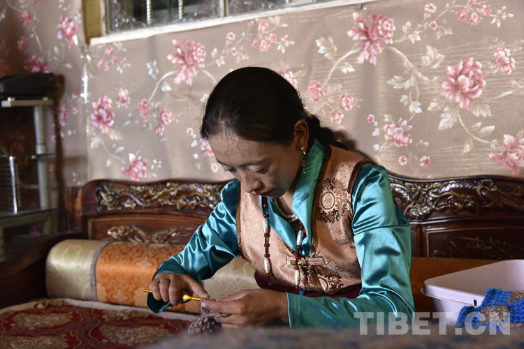 圖為西藏自治區(qū)阿里地區(qū)改則縣圓夢(mèng)新居易地扶貧搬遷點(diǎn)居民扎西頓珠的妻子索南措姆在編織 攝影:王媛媛