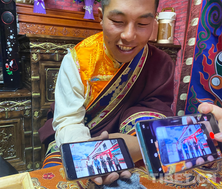 圖為西藏自治區(qū)阿里地區(qū)改則縣圓夢(mèng)新居易地扶貧搬遷點(diǎn)居民扎西頓珠在向記者展示自己的抖音視頻 攝影:王媛媛