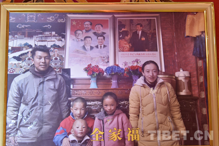 圖為西藏自治區(qū)阿里地區(qū)改則縣圓夢(mèng)新居易地扶貧搬遷點(diǎn)居民扎西頓珠一家全家福 翻拍:王媛媛