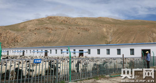 白瑪次旺正在合作社里照看羊群(中央廣播電視總臺央廣記者 普布次仁 攝)