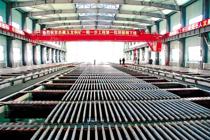 圖為玉龍銅礦(地處昌都市江達(dá)縣)一期工程第一批陰極銅下線。 記者 陳志強(qiáng) 攝