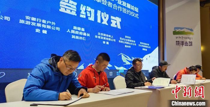 圖為當(dāng)雄縣官方與30余家戶外俱樂部、文化賽事機構(gòu)和企業(yè)單位代表進行合作簽約?!∝暽@?攝