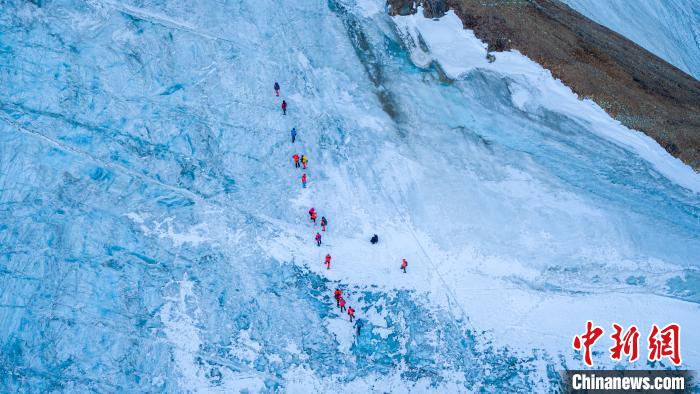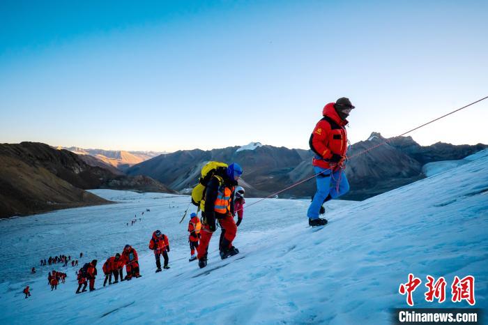 圖為第三極攀登者2020中國企業(yè)家冰川挑戰(zhàn)賽參賽者在登山途中?!‘?dāng)雄縣委宣傳部供圖