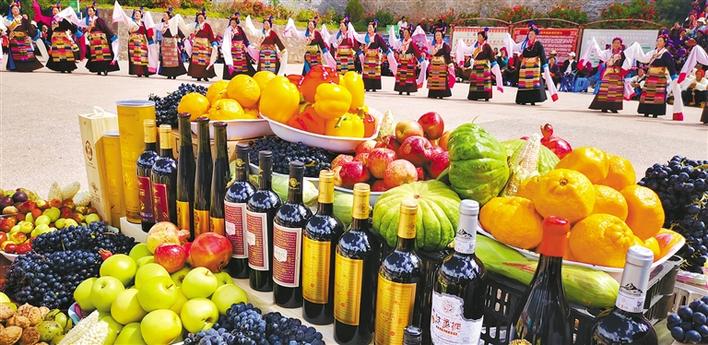 圖為近日西藏自治區(qū)昌都市芒康縣干部群眾歡聚一堂,載歌載舞,慶祝葡萄豐收。記者 桑鄧旺姆 陳志強 攝