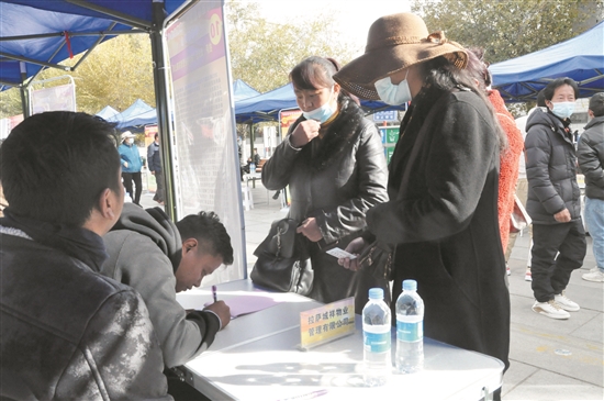 為精準(zhǔn)解決老城區(qū)低收入群體就業(yè)問題,11月16日,老城區(qū)百巷千家就業(yè)增收精準(zhǔn)對(duì)接專場(chǎng)招聘會(huì)在八廓商城廣場(chǎng)舉行。