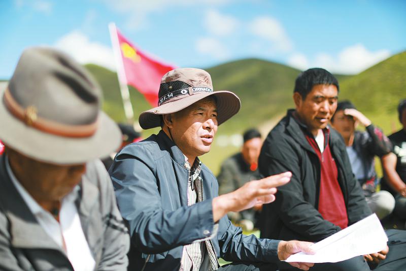 松潘縣摩托宣講隊在遠牧點宣講惠民政策。 周琳 攝