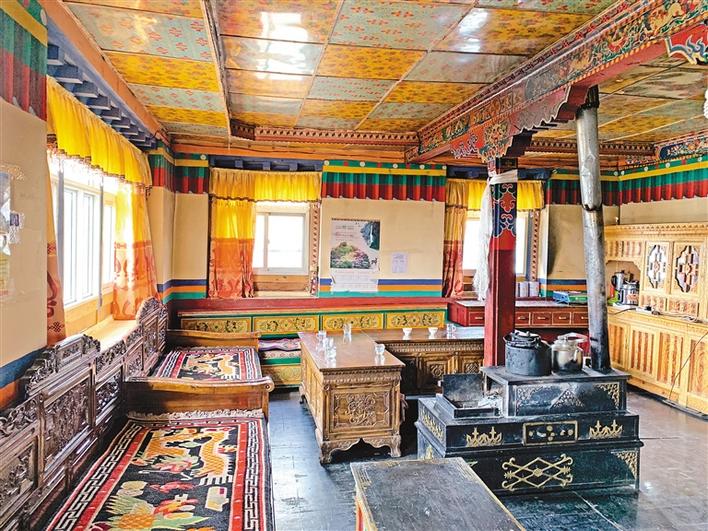 次仁玉珍今年60歲,家里有兩個(gè)女兒。走進(jìn)次仁玉珍家,干凈的小院、寬敞的房子、屋內(nèi)各式家具家電一應(yīng)俱全?!耙郧?,家里的房子又小又破,只有幾十平方米,每逢下雨,屋子還漏雨。2016年,政府幫我們翻修擴(kuò)建了房子,我們自己只出了5000元,現(xiàn)在的新房有250平方米左右。”大女兒次仁央金說(shuō)。