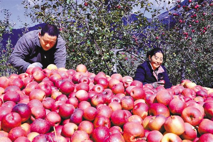 圖為近日,巴宜區(qū)珠曲登村群眾在采摘蘋果。記者 胡文 通訊員 楊志宏 攝