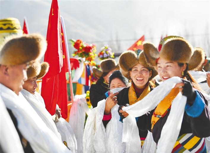 圖為3月16日,克松社區(qū)居民身著節(jié)日盛裝齊聚田野,在古老的《春耕之歌》的悠揚旋律中舉行春耕儀式。新華社記者 晉美多吉 攝