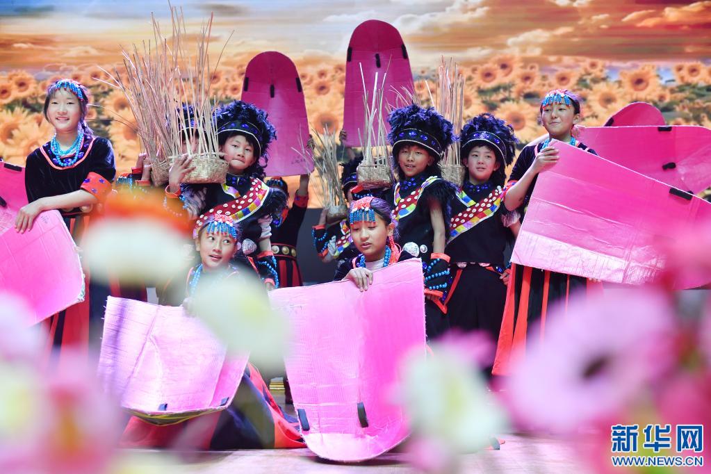 3月30日,米林縣中學(xué)學(xué)生在“U+校餐計(jì)劃”捐贈(zèng)儀式上表演節(jié)目。新華社記者 孫瑞博 攝