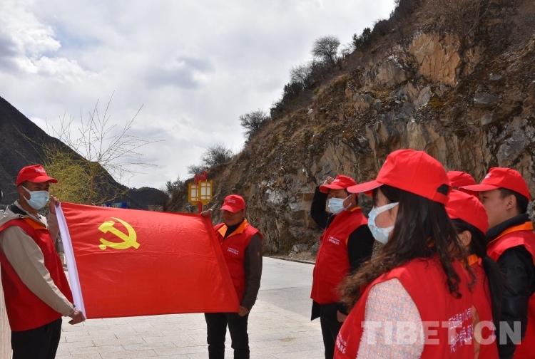 圖為國網(wǎng)江達縣供電公司在西藏解放第一村重溫入黨誓詞