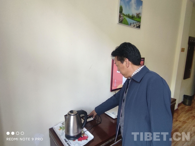 圖為旅客正在尼瑪次仁的家庭旅館內(nèi)使用燒水壺燒水