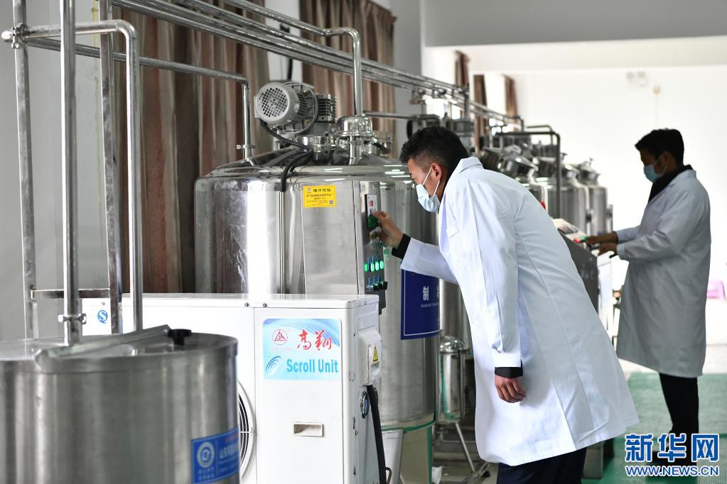 工作人員在西藏娘亞牦牛養(yǎng)殖產業(yè)發(fā)展有限責任公司的酸奶生產車間作業(yè)(7月28日攝)。新華社記者 李鑫 攝