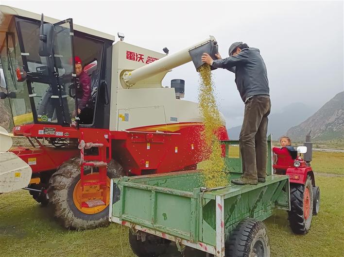 圖為邊壩縣群眾使用機器收割青稞。昌都市農(nóng)業(yè)農(nóng)村局提供