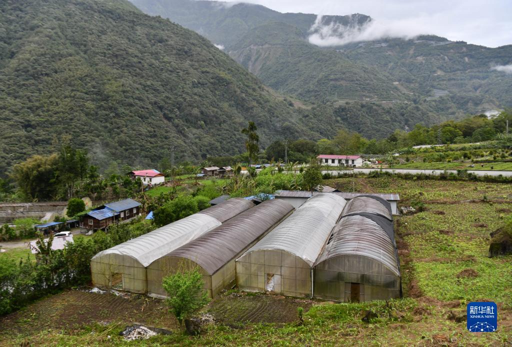 幾個(gè)蔬菜大棚依山而建