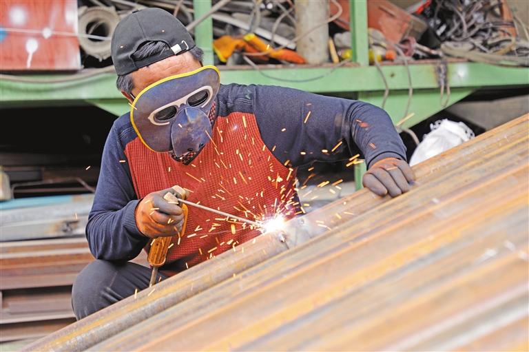 修理廠工人在焊接鋼管。