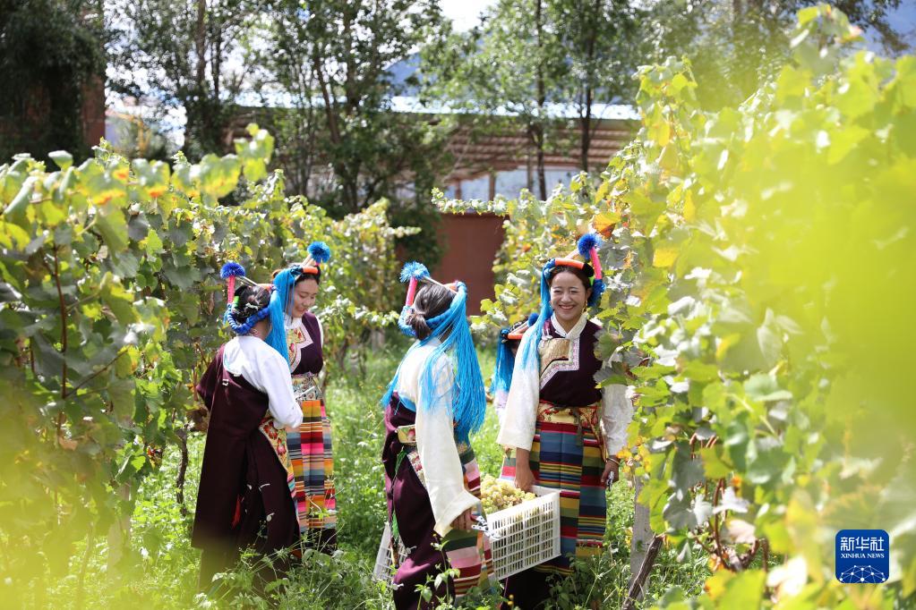 芒康縣納西民族鄉(xiāng)納西村群眾在葡萄園采摘葡萄。(受訪者供圖)