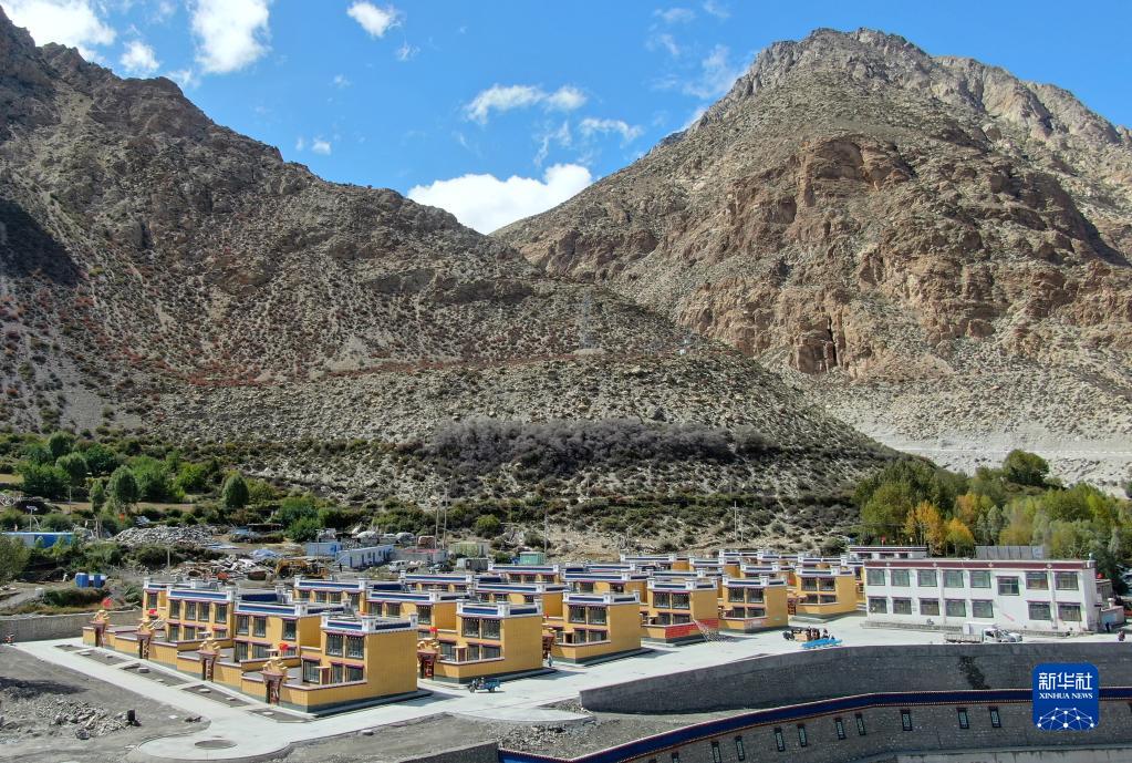 這是2019年9月21日拍攝的西藏山南市洛扎縣洛扎鎮(zhèn)新建成的次麥社區(qū)邊境小康村(無人機(jī)照片)。新華社記者 晉美多吉 攝