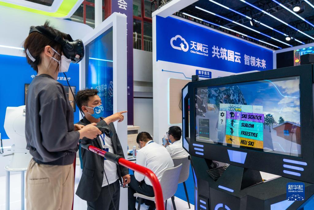 參觀者在會(huì)場(chǎng)體驗(yàn)VR游戲。新華社記者周荻瀟 攝