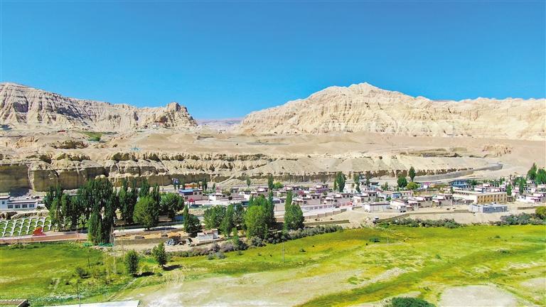 旭日初升,金黃的陽(yáng)光遍灑這座幸福村落,村民們迎著朝陽(yáng),又開(kāi)始了一天忙中有序的生活,遠(yuǎn)處赫然矗立的古格王國(guó)遺址默默注視,見(jiàn)證著這里的華麗蝶變。