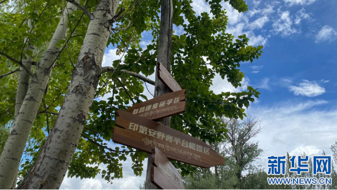 圖為薩己林野奢營地路標(8月2號攝)。新華網(wǎng)發(fā) 丹增卓嘎(實習(xí)生)攝。