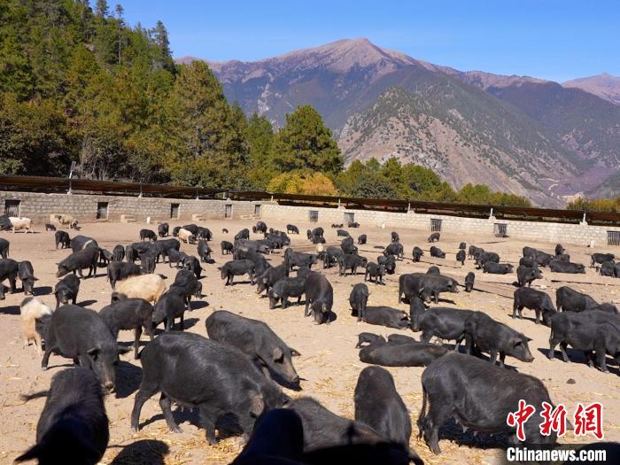 圖為養(yǎng)殖基地里的藏香豬。 鄧海平 攝