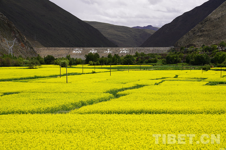 圖為瓊結(jié)縣瓊果水庫(kù)下游農(nóng)田開滿油菜花 攝影:曲杰