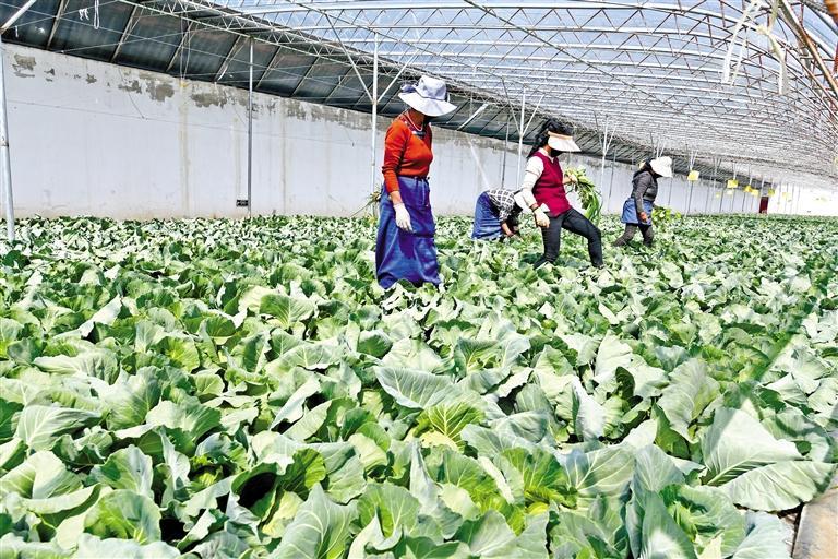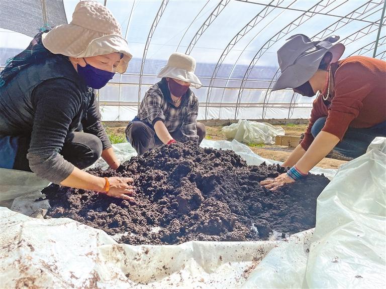某農(nóng)業(yè)科技公司的員工在大棚里工作。 記者 旦增蘭澤 攝