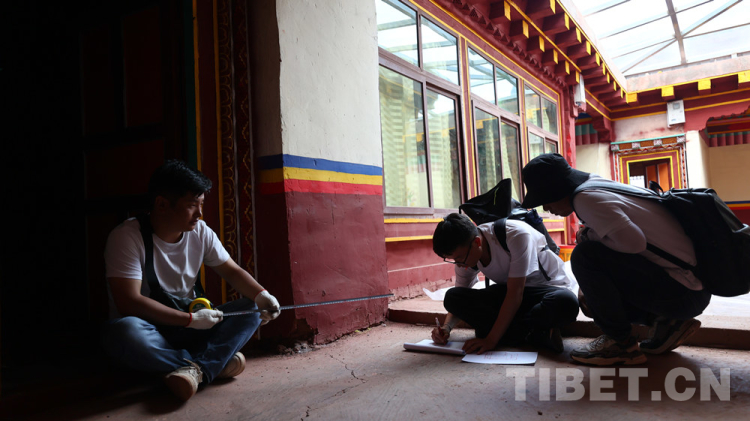 在十幾天的綜合科考活動中,科考團隊的青年隊員們持續(xù)克服高原缺氧、路途顛簸和水土不服等各方面的困難,順利完成了綜合科考隊下達的每日科考任務(wù)。身處青藏高原的腹地,青年隊友們每天早上八點半從營地出發(fā),完成各類田野調(diào)查和測繪工作,歸來已經(jīng)是晚上的八、九點鐘。在吃過晚飯后,他們會著手整理每天的田野工作成果,直至深夜。在這樣的工作強度之下,青年隊員們最終完成了五個鄉(xiāng)鎮(zhèn)、八個行政村和二十一個自然村的共計六十棟古建筑的測繪工作。