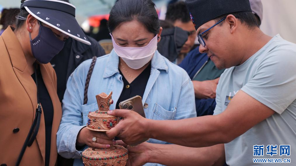 圖為展銷會現(xiàn)場群眾在尼泊爾商戶展區(qū)(8月25日攝)。新華網(wǎng) 柑丹鴦琦 攝