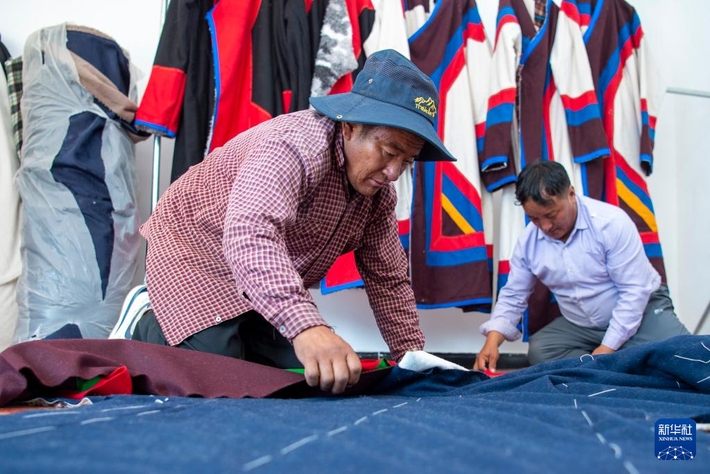 一位村民在縫制藏袍(8月24日攝)。新華社發(fā)(旦增努布 攝)