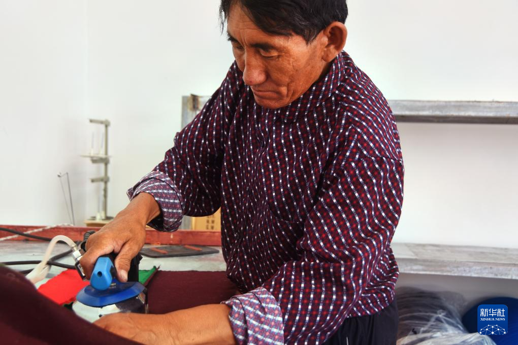 一位村民在操作羊毛被加工機器(8月24日攝)。新華社記者 劉文博攝