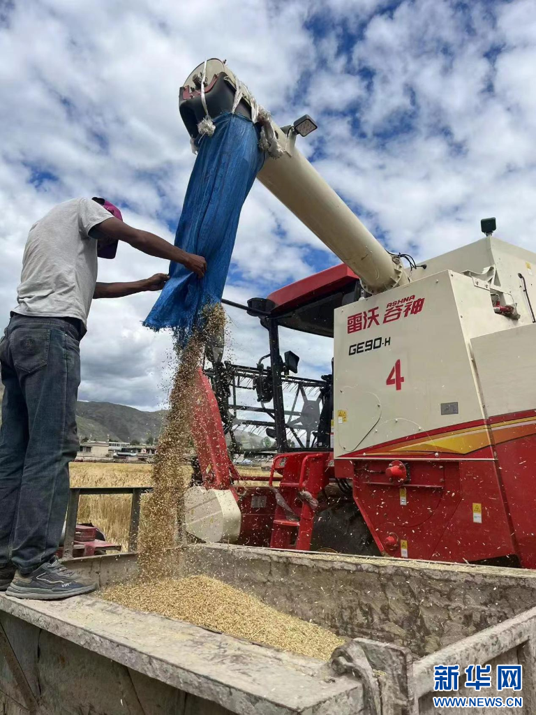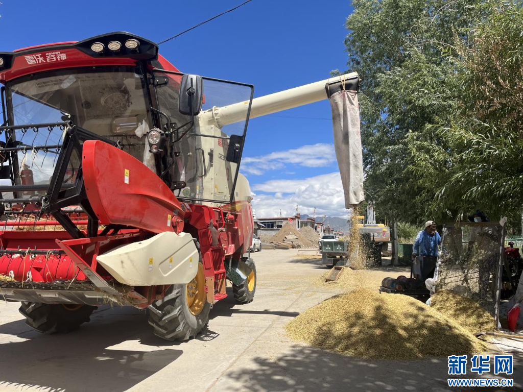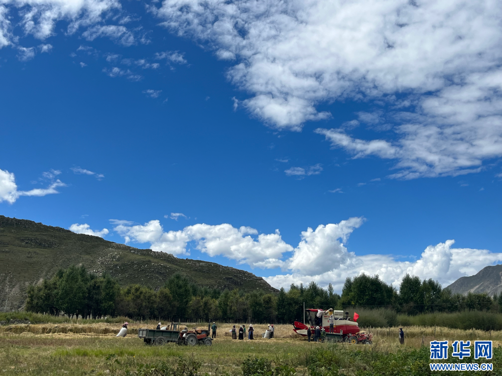 秋收時(shí)節(jié),西藏各地加快推進(jìn)秋收工作。在西藏拉薩市達(dá)孜區(qū),金色的田野里聯(lián)合收割機(jī)、拖拉機(jī)和電動(dòng)三輪車來回穿梭,收割、摘穗、秸稈粉碎、運(yùn)輸……一片繁忙景象。